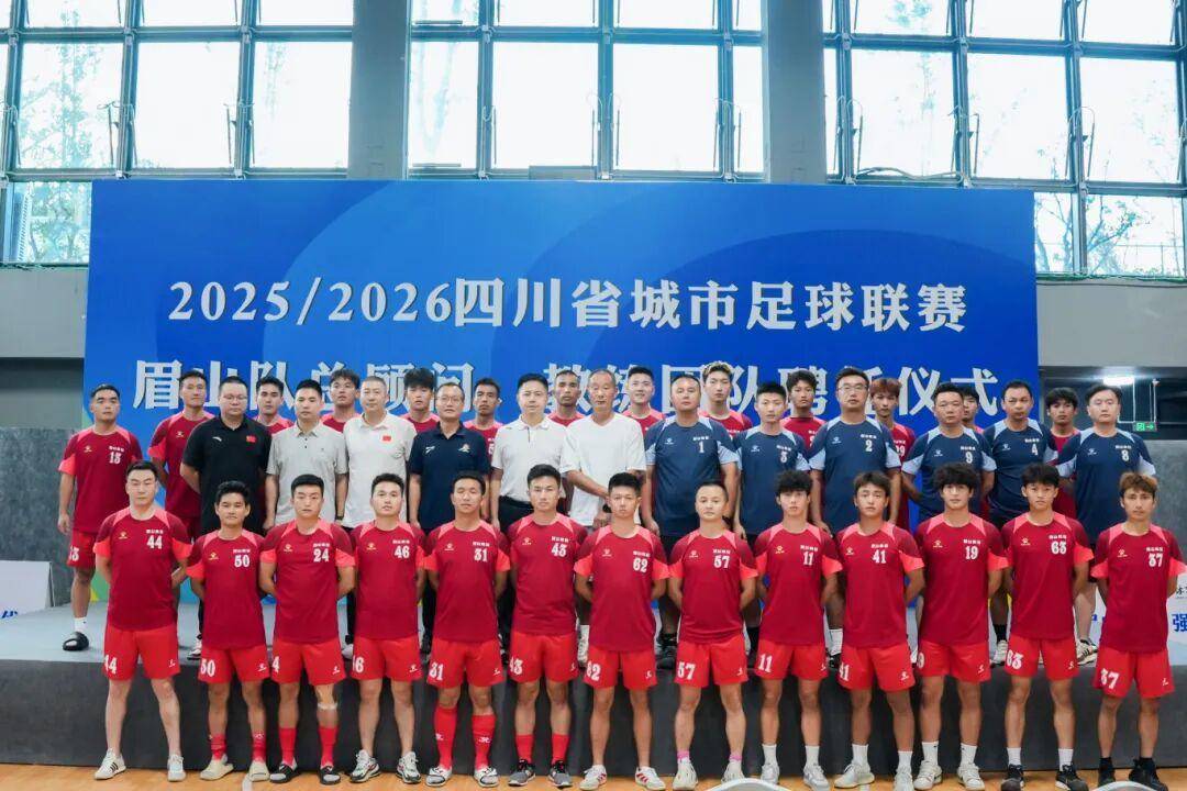 据了解,除了队员,眉山队还公布了球队口号、队徽和队旗。口号:文武双全,论剑天府。该口号化用眉山“三苏”文脉与巴蜀“天府”地理符号,“论剑”取自武侠文化,呼应四川足球竞技的豪迈传统。“文武双全”既喻东坡故里文风底蕴,亦指球队技战术与意志力兼备;“论剑天府”以武林盛会喻指川超联赛,彰显球队角逐赛场、问鼎巅峰的雄心。全句融合人文与竞技精神,展现智勇双全的团队气质。