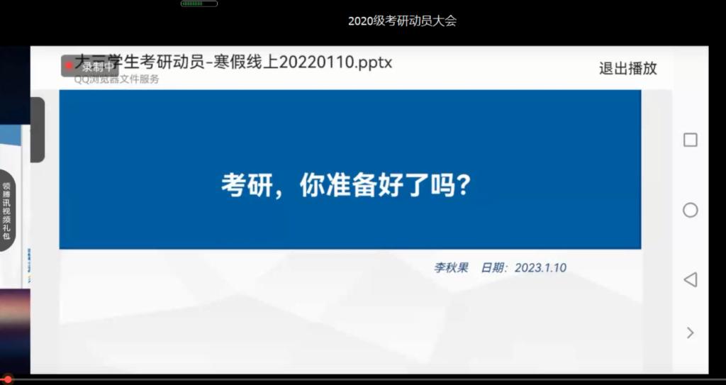 (通讯员:李韵王陈)为加强公司学风建设,提升大三员工对于考研的认知,更早的确定考研目标,明晰考研计划、充实假期生活。2022年1月10日下午3:00,太阳集团tyc539通过腾讯会议开展线上2024届考研动员大会,出席本次会议的有公司党委副书记李秋果、辅导员王陈,本次会议由辅导员王陈主持,公司2020级全体本科生参加。