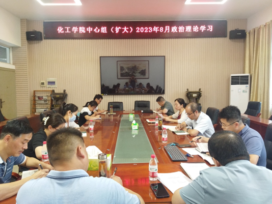 8月26日下午,化工学党委理论学习中心组(扩大)在14教西303会议室开展2023年8月集中学习。党委书记王丽主持学习会。全体公司领导、科级及以上干部参加学习会。