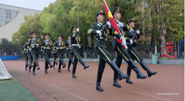 早7点,升旗仪式正式开始。在全体师生的注目礼下,英姿飒爽的国旗护卫队队员们护送鲜艳的五星红旗进场。伴随着庄严的中华人民共和国国歌,五星红旗冉冉升起,迎风飘扬。在场的每一个人向国旗行注目礼,深怀对祖国无限的热爱和崇高的敬意。