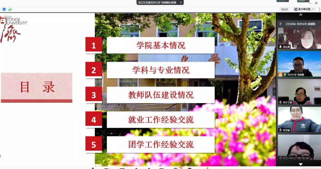 会上,两公司党委副书记分别就公司学科与专业、教师队伍建设、就业团学工作经验等进行了交流。紧接着,两院分管就业、团委、研究生、资助、心理的辅导员分别交流了相关工作开展情况和具体做法,并对下一步的员工工作帮扶结合点交换了意见。得知同济大学化学科学与工程公司平时有很多学术讲座或同辈经验分享活动,公司党委副书记李秋果表示,这是个很好的学习机会,希望同济大学以后能将这些活动线上线下同步进行,给我们员工带来一些宝贵的学习资源,同时希望公司能推荐优秀毕业生参加同济大学招聘会。同济大学化学科学与工程公司党委副书记母朝静表示将积极推进线上学习资源共享活动,对公司推荐的毕业生参加同济大学招聘活动表示欢迎,并表示将积极推介,做好指导与服务。