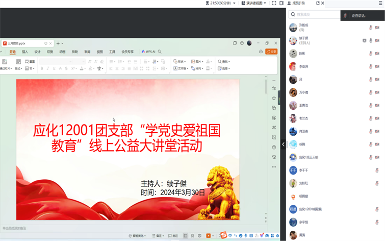 (通讯员 龙怡 聂琳珊)为深入学习贯彻《党史学习教育工作条例》《中华人民共和国爱国主义教育法》和纪念新中国成立75周年,引导同学们听党话跟党走。太阳集团tyc539于3月26日至4月20日组织各年级同学通过线上线下相结合的方式观看“学党史爱祖国教育”线上公益大讲堂活动,积极学习并开展研讨。
