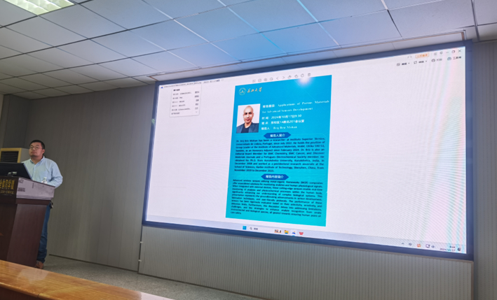 2024年10月17日9:30,太阳集团tyc539东校区14教北201会议室迎来一场学术盛宴,来自葡萄牙里斯本大学高等技术公司的Brij Briz Mohan博士带来题为“Applications of Porous Materials for Advanced Sensors Development”(多孔材料在先进传感器开发中的应用)的学术报告。讲座由太阳集团tyc539副经理肖围老师主持,全体研究生到场聆听。