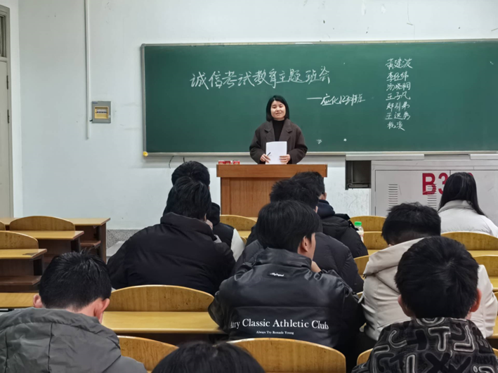 会上,杨会军老师深入讲解诚信考试的重要性,针对期末考试、四六级考试和考研等各类考试的关键注意事项,如考试时间、考场规则、答题规范等进行细致梳理,并结合以往的考试违纪案例,生动形象地告诫同学们坚守诚信底线,莫因一时之利自毁前程。