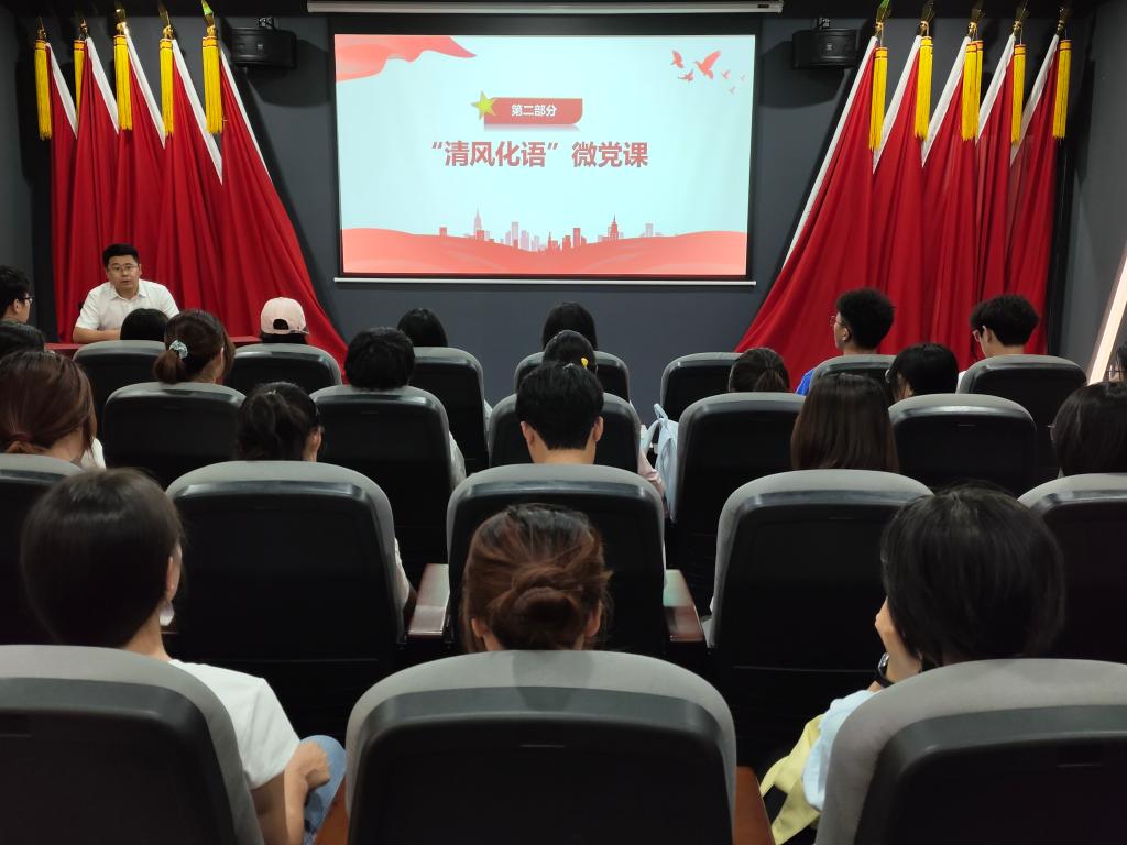 杨会军以深入贯彻中央八项规定精神学习教育为主题为员工党员讲授“清风化雨”党课,他强调,党员同志要将中央八项规定精神转化为日常行为准则,员工党员应在学术诚信、班级管理、日常服务中以身作则,做到忠诚干净担当,永葆初心本色,以“头雁效应”带动形成风清气正的育人环境。