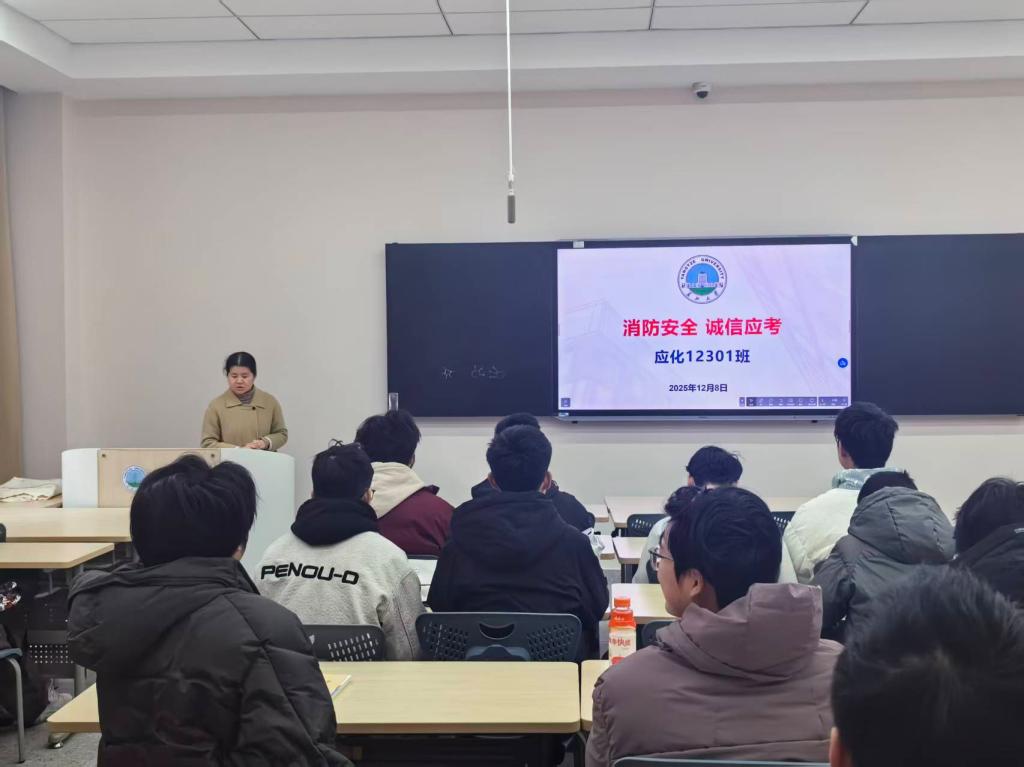 在公司的统筹部署下,各本科班班主任、研究生辅导员积极牵头组织,班会内容丰富务实、重点突出。消防安全环节,班主任结合化工学科特性与校园、居家场景,通过播放火灾事故警示片、拆解实验室违规操作引发火情的典型案例,详细讲解了火灾预防要点、初期火灾扑救方法、灭火器正确使用步骤以及火场逃生自救技巧,特别强调了实验室易燃易爆物品存放规范、宿舍大功率电器禁用等关键要求,引导员工时刻绷紧消防安全弦。公司各年级辅导员走访员工寝室,排查安全隐患,了解员工复习进度。