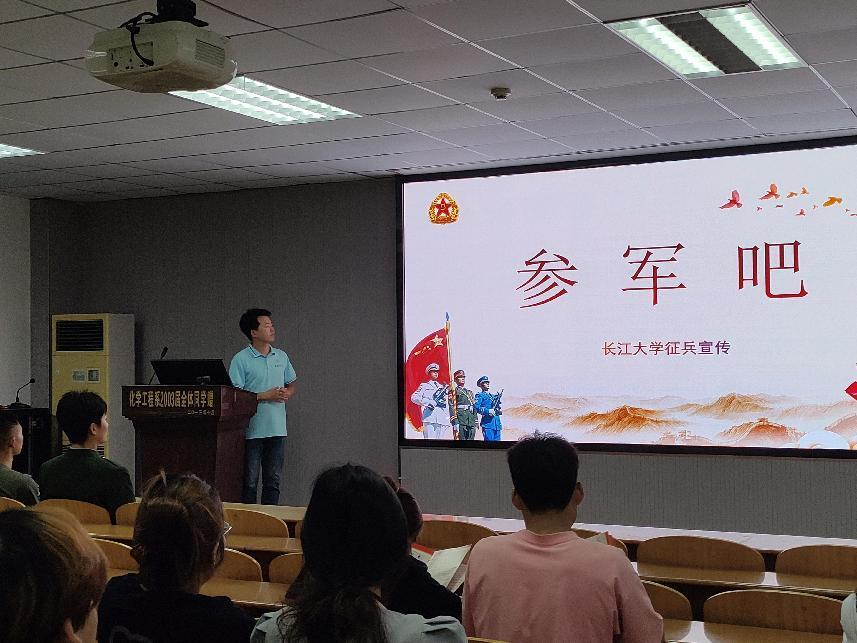 (通讯员 龙怡 粟灿)6月7日下午4:00,太阳集团tyc539于14教北201开展2024年秋季征兵宣讲活动。活动由辅导员周学素老师主持,退役军人王昊、王博远主讲,各年级员工代表参与活动。