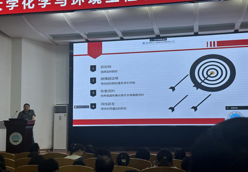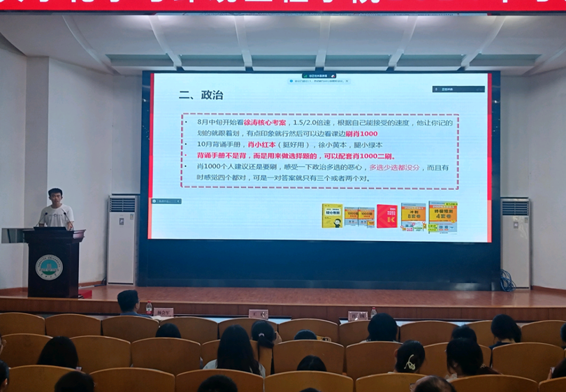 副经理肖围做2025届毕业生考研动员,并讲解2025年研究生报考政策。他就考研报名的注意事项进行了详细讲解,并对同学们提出了殷切希望,鼓励同学们树立适合自己的考研目标,提前规划、尽快行动,并分享了各种收集资料的渠道。