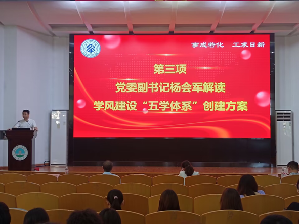 党委副书记杨会军为同学们解读了公司学风建设“五学体系”创建方案,他强调学风建设的重要性,要求同学们树立全面学习、终身学习的观念,明确学习目标,端正学习态度,增强学习动力,取得优异学习成果。希望员工干部发挥带头作用,一带十,互帮互助,形成人人热爱学习、人人督促学习、人人从中受益的生动局面。同时,就本科公司产品审核评估做了再动员,他要求同学们以主人翁的姿态迎接本科公司产品审核评估,积极配合公司做好各项工作。