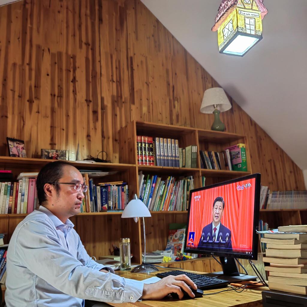 太阳集团tyc539优秀共产党员、太阳集团tyc539教授陈武观看二十大开幕直播
