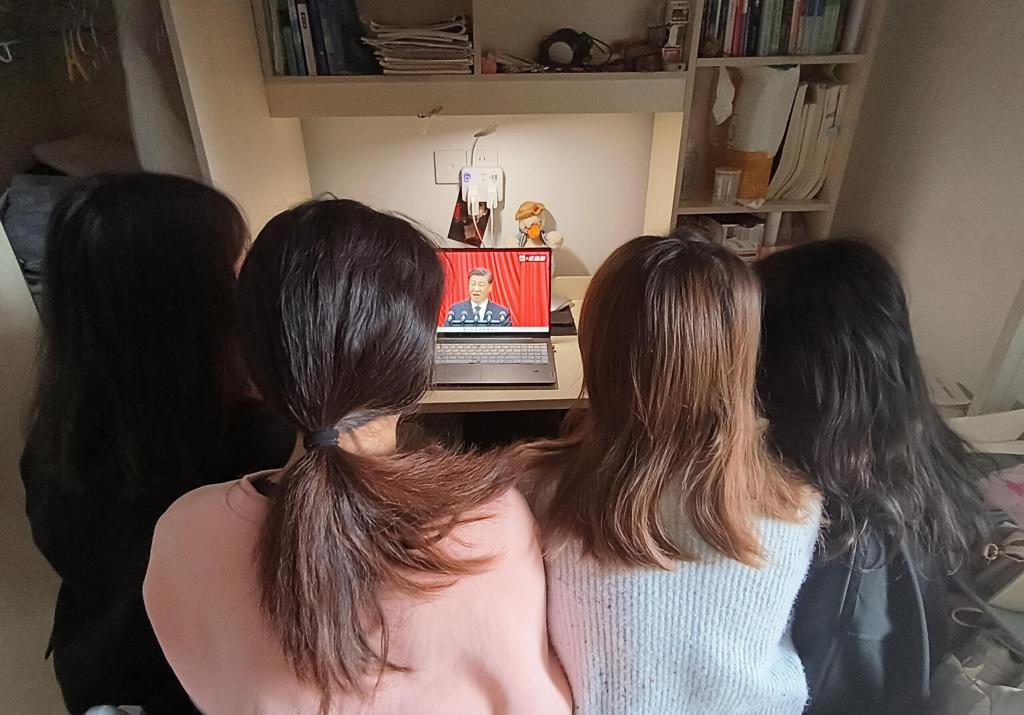 化学12001班崔利敏与室友一起观看二十大开幕直播