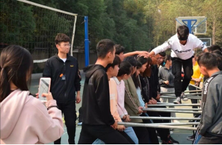 活动分为上、下午两场,有趣的热身小游戏之后,教练给同学们安排了制作队旗的任务。大家你一言,我一语,开始为各自团队提供创意。经过排练后,几个班组成一组开始进行比拼。欢声笑语的比拼后,正式的拓展训练真正开始了。“漫漫人生路”“极速六十秒”“盗梦空间”“盘丝洞”“真口令,假口令”等8个项目陆续展开。活动中,教练的“握握手”“捏捏肩”等指令,让同学们通过细微接触更加熟悉了彼此,打开了心扉。