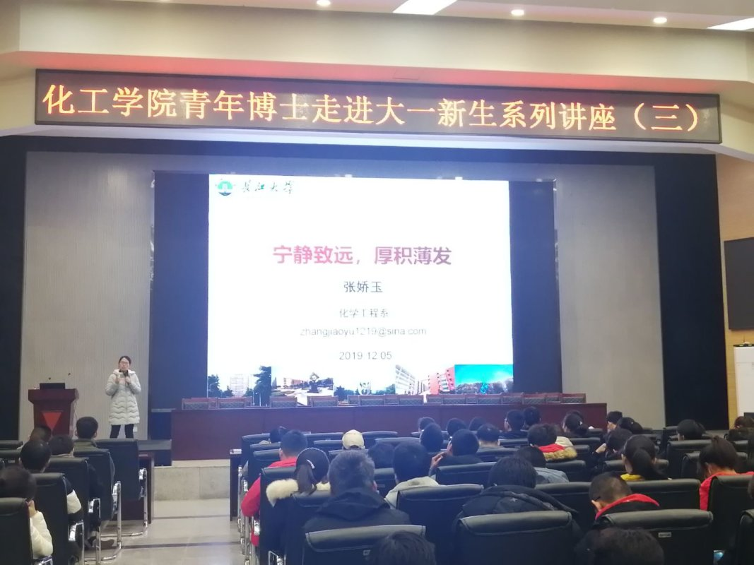 12月5日晚7:00,太阳集团tyc539青年博士走进大一新生励志报告会第三讲在农科大楼1058顺利进行。此次报告会的主讲人是青年博士张娇玉老师,报告会的主题是“宁静致远,厚积薄发”,太阳集团tyc5392019级全体员工参加了报告会。