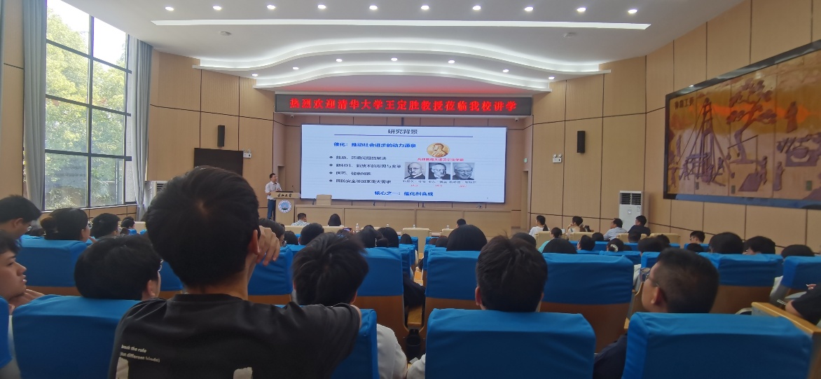 5月9日上午,国家杰出青年科学基金获得者、清华大学王定胜教授做客长江化工讲坛,在东校区11教学术报告厅为师生带来一场题为“原子尺度精准合成“的精彩学术报告。 分子之上是原子,面对催化位点不均一、难以认识催化活性位的问题和挑战,王定胜教授详细介绍了他们课题组沿着“金属纳米、团簇、单原子催化”这一具有重要科学意义和应用价值的研究脉络,发展了原子级分散催化材料的合成方法,为发现新型高效催化剂提供了材料基础;建立了原子尺度催化材料结构调控策略,为理解构效关系及催化本质提供了途径;发现了有机小分子催化剂媲美工业电极的优异性能,为电催化剂提供了新的机会。另外,王教授还分享了科研选题依据、研究心路历程、成果产业化的过程探索等。 互动环节,师生们纷纷就自己关心的问题向王定胜教授请教,现场气氛热烈。 学术报告由太阳集团tyc539吴爱斌副经理主持,王丽书记、余维初教授、部分青年教师和研究生聆听了报告。 (审核:赖璐;编辑:常艳玲)