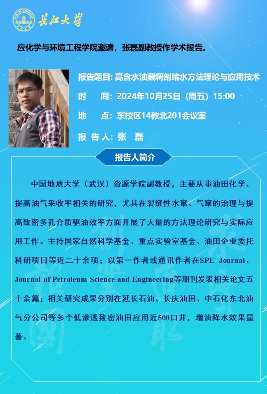 长江化工讲坛:高含水油藏调剖堵水方法理论与应用技术