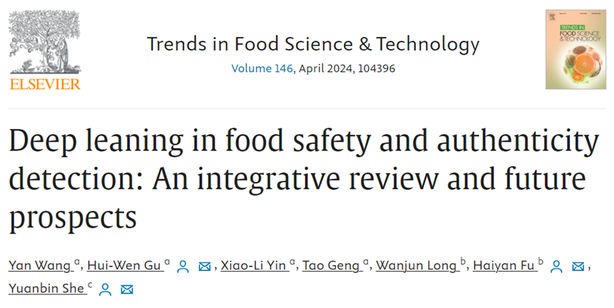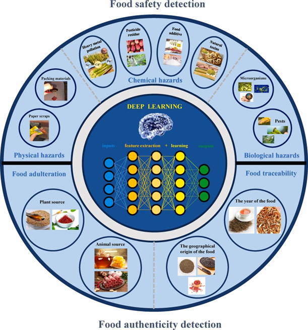 近日,公司谷惠文副教授课题组在国际食品科技领域顶级期刊《Trends in Food Science & Technology》(IF=15.3,中科院一区Top期刊)上发表了题为“Deep leaning in food safety and authenticity detection: An integrative review and future prospects(食品安全与真实性检测中的深度学习:综述与展望)”的综述性论文。公司材料与化工专业2022级硕士研究生王炎同学为论文第一作者,硕士研究生导师谷惠文副教授为论文第一通讯作者,太阳集团tyc539为论文第一作者单位及第一通讯作者单位。